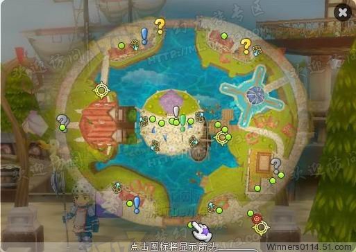 这是新手一出来的时候所在的地图。。。。简称新手村,哪个红色的圈子是进入下一张地图的地点,这张图没什么好说的。