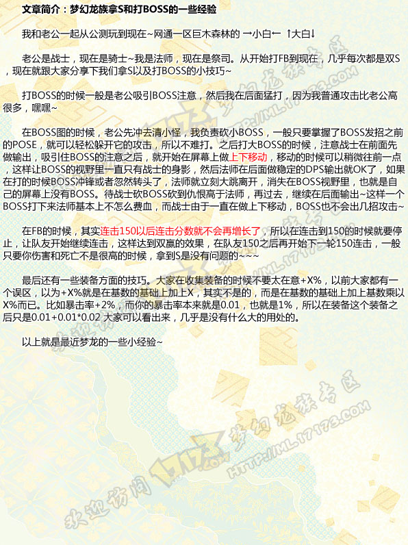 【原创投稿17173梦幻龙族专区,可获得积分兑换点卡Q币周边好礼】