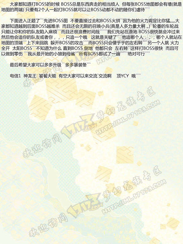 【原创投稿17173梦幻龙族专区,可获得积分兑换点卡Q币周边好礼】