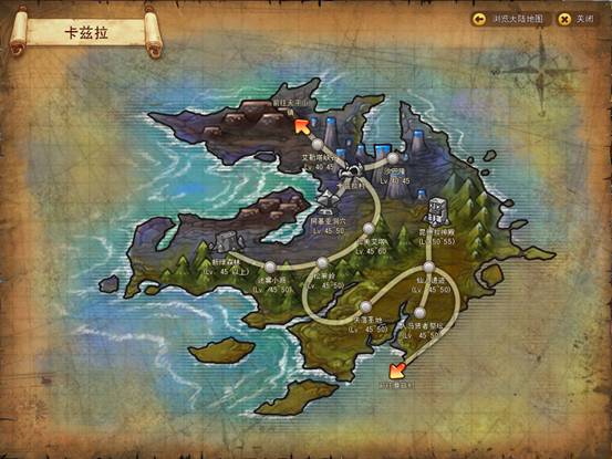 《梦幻龙族II》大陆地图分为二大板块:风之大陆、混沌大陆 7大城镇,分别是:钟声小镇、风之港口、月光海岸村庄、天平小镇、蘑菇村、紫雾村庄、露水营地。在7大城镇周围,分布着危机四伏的野外地图和地下城地图。